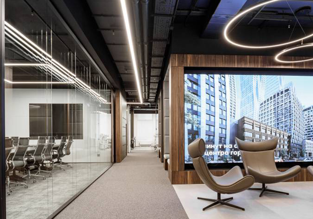 Описание проекта: Новый головной офис Level Group, одной из лидирующих компаний столичного рынка девелопмента, начал свою работу в БЦ Wall Street на Валовой улице – он расположился на 4-ом этаже бизнес-центра. Одной из особенностей проекта является высокая доля импортозамещения – 85% всех материалов и оборудования, начиная от фальшполов и заканчивая системами освещения, были произведены в Сыктывкаре. Оставшиеся 15% пришлись на азиатских (8%) и европейских (7%) производителей.